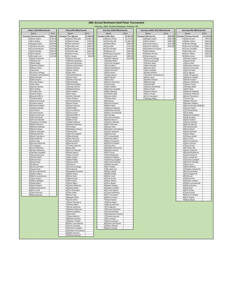 Saturday 10AM: (82 players)